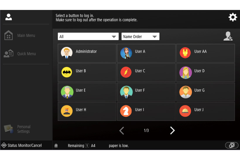 | 標準 | 影印、列印(UFRII, PCL)、掃描、傳送與儲存 | ||