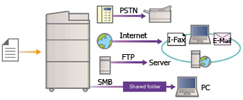 只需一個步驟,便可把文件傳送到一個或多個目的地,包括電子郵件、傳真、網際網路傳真及文件,每次可傳送最多256個目的地。 |